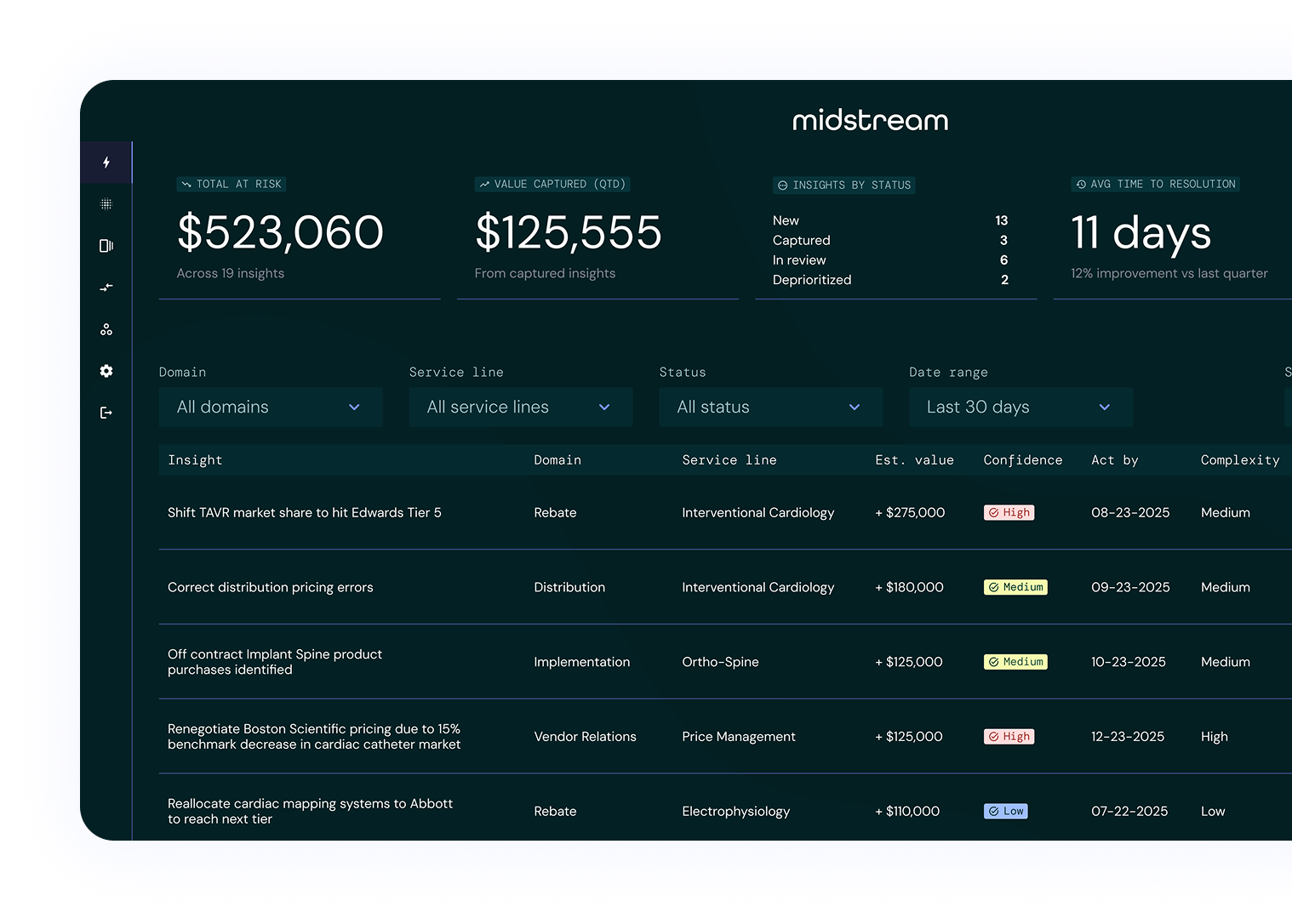 Midstream is an AI-powered, proactive financial action platform purpose-built for health systems